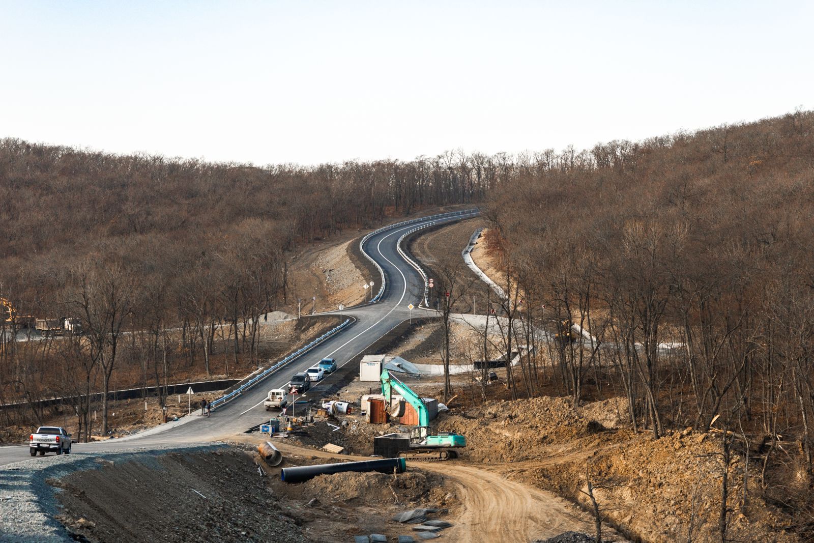 На финишную прямую вышло строительство дороги и примыкания к трассе Седанка – Патрокл во Владивостоке. На объекте ещё ведутся работы, но они на завершающей стадии. Специалисты администрации Владивостока уточняют, что рабочим осталось завершить монтаж освещения на объекте и установить леерное ограждение.