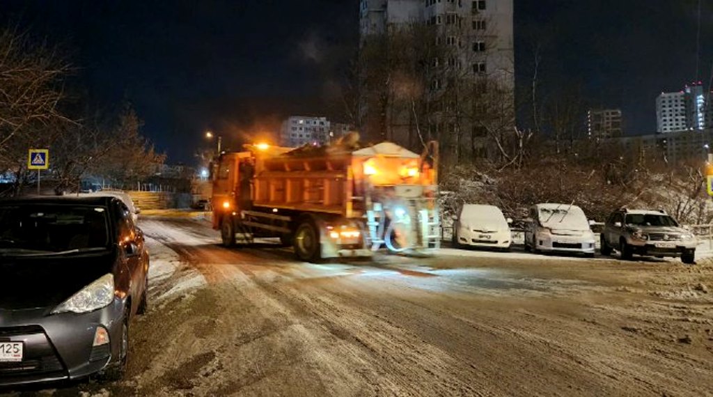«Противогололёдными материалами были обработаны Экипажная, Университетский и Партизанский проспект, трасса Седанка – Патрокл, Черняховского, 1-я Морская, Хабаровская и другие улицы. Вручную рабочие просыпали песко-соляной смесью участки на Аллилуева, проспект Острякова, Башидзе, переулок Павленко, Алеутскую, Океанский проспект и виадуки на Некрасовской, Калинина, Вилкова и по другим адресам», – уточняют специалисты администрации Владивостока.