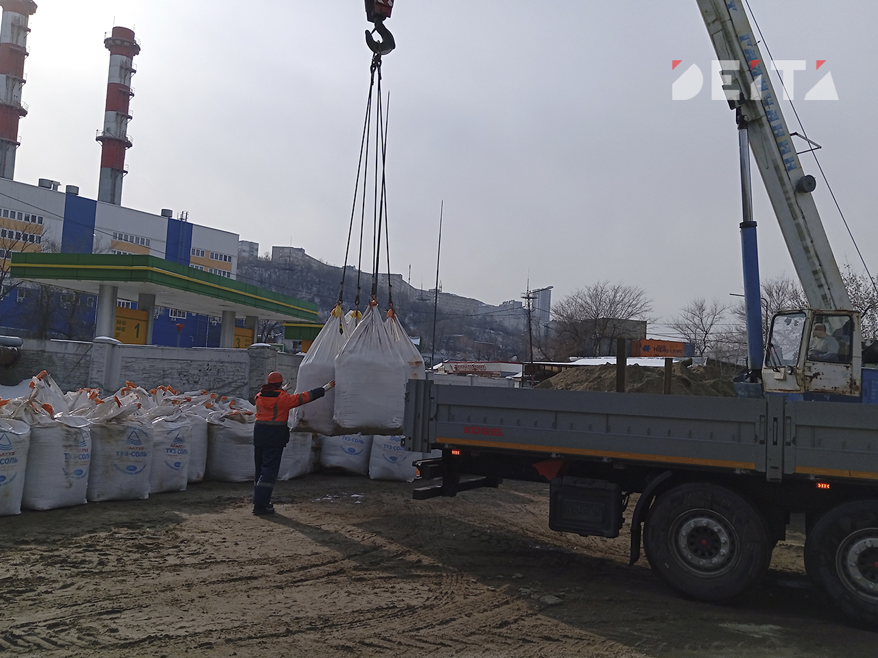 Тем временем на базе тоже кипит работа – необходимо смешивать тонны соли с песком, формируя смесь для обработки проезжей части.