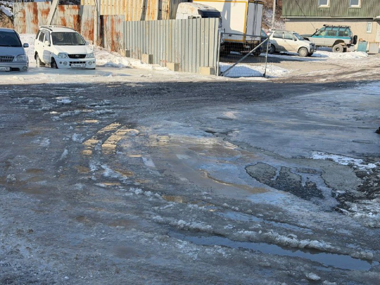 Жильцы ЖК «Фрегат-2» во Владивостоке жалуются на обледенение придомовой территории корпуса № 4 на Нейбута, 2а и Нейбута, 4б, в которую уже вмёрзли автомобили, что препятствует проезду к дому, в том числе для транспорта экстренных служб, сообщает ИА DEITA.RU.