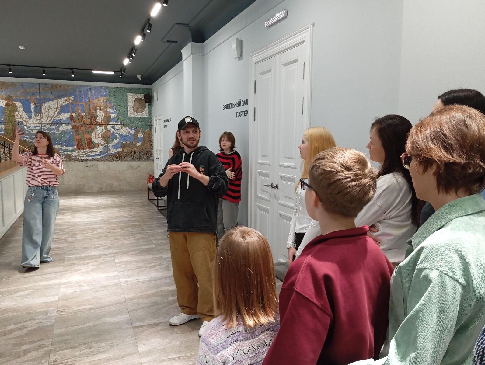Экскурсию проводили актёры театра Олеся Белоконь и Сергей Рюмкин, которые явно горят своим делом – рассказ шёл легко и интересно, а на вопросы присутствующих актёры отвечали с удовольствием. Так, например, Сергей Рюмкин рассказал, почему после реконструкции зрительного зала мест для гостей стало меньше.