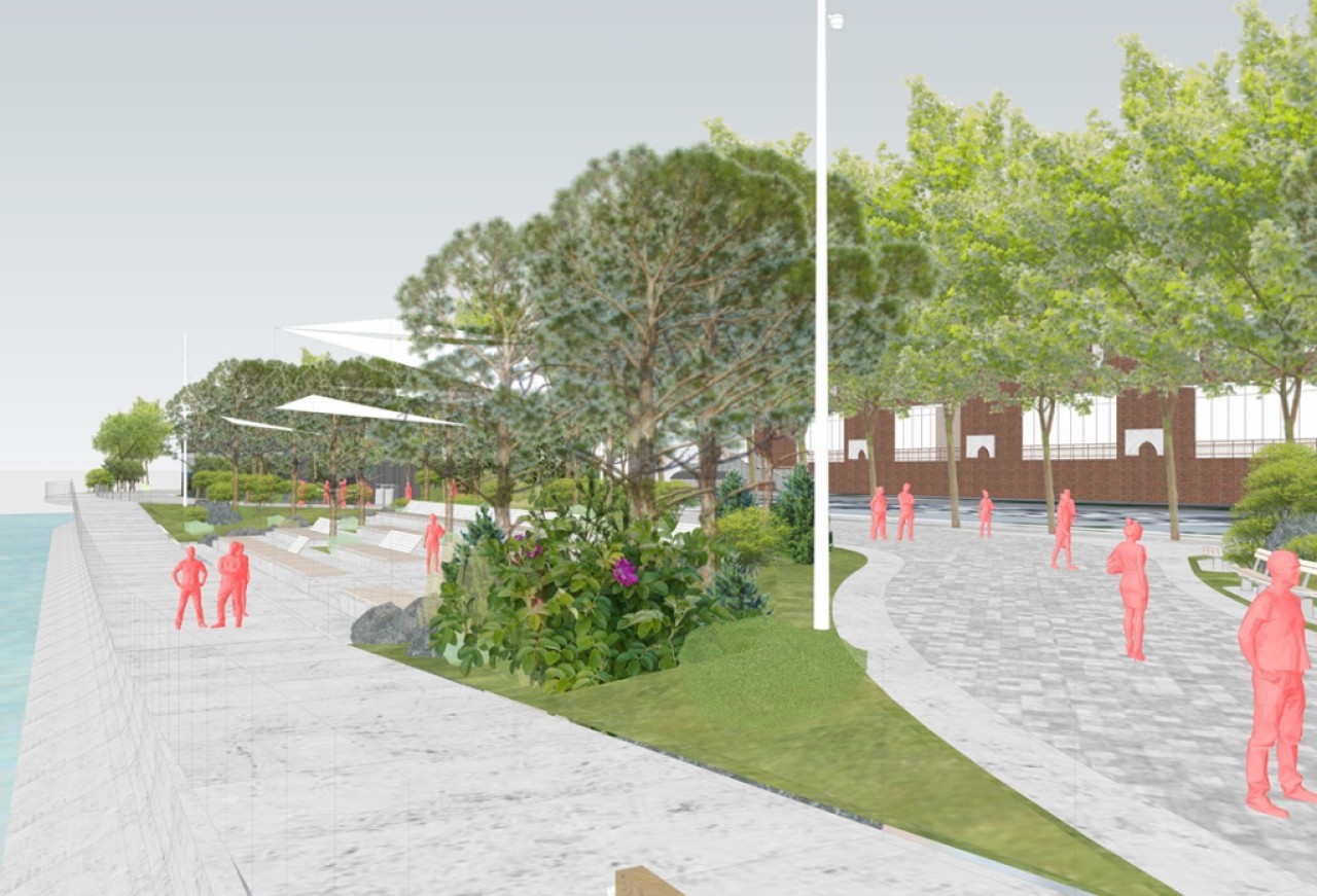 Вдоль пешеходного маршрута разместятся уютные зоны отдыха с тенью от деревьев, а на видовых площадках у самой кромки воды можно будет созерцать морской пейзаж.