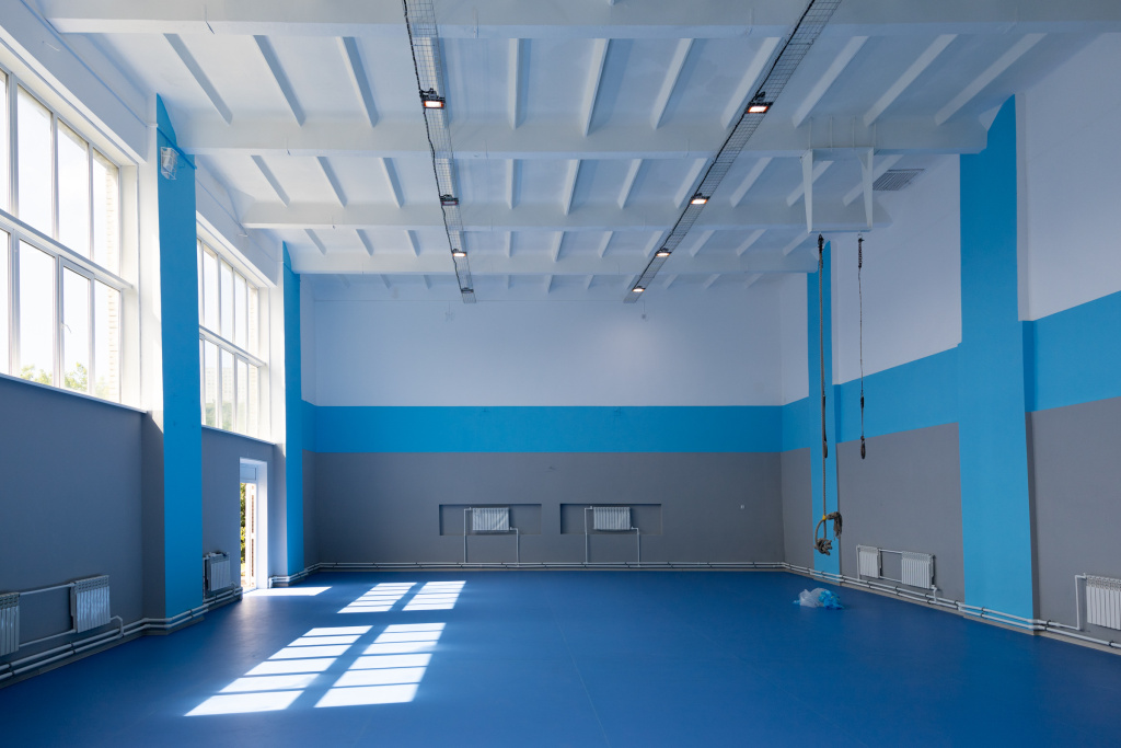 В центре образования «Вектор» на улице Космонавтов,15 выполнят капитальный ремонт большого спортзала. При этом работы фактически завершены – полностью обновлены коммуникации, окна, напольное покрытие, окрашены стены, в раздевалках оборудованы душевые и уложен кафель.
